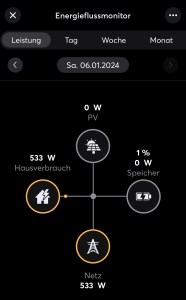 Im Zuge der Installation der PV-Anlage hat unser Elektriker diese in der Softwarelösung des Herstellers registriert. Das ist in meinem Fall das Sunny Portal von SMA. Zusätzlich gibt es eine App, welche die Daten visualisiert, die die Anlage an das Portal übermittelt. Damit sieht man zu jeder Zeit, wieviel Strom die Anlage gerade produziert, wieviel verbraucht wird, was der Ladezustand der Batterie ist, und viele weitere Details, sowohl aktuell als auch in der Vergangenheit. Und wie alles Neue ist das erst mal unglaublich interessant.
